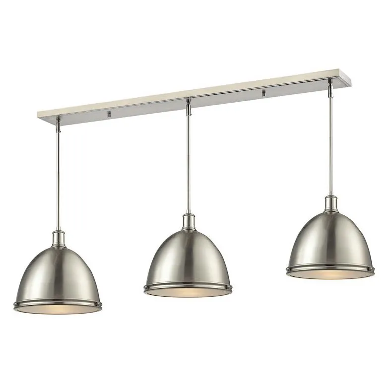 Richly finished in classic rubbed bronze, this three-light billiard pendant is a statement piece to any game room or kitchen island.