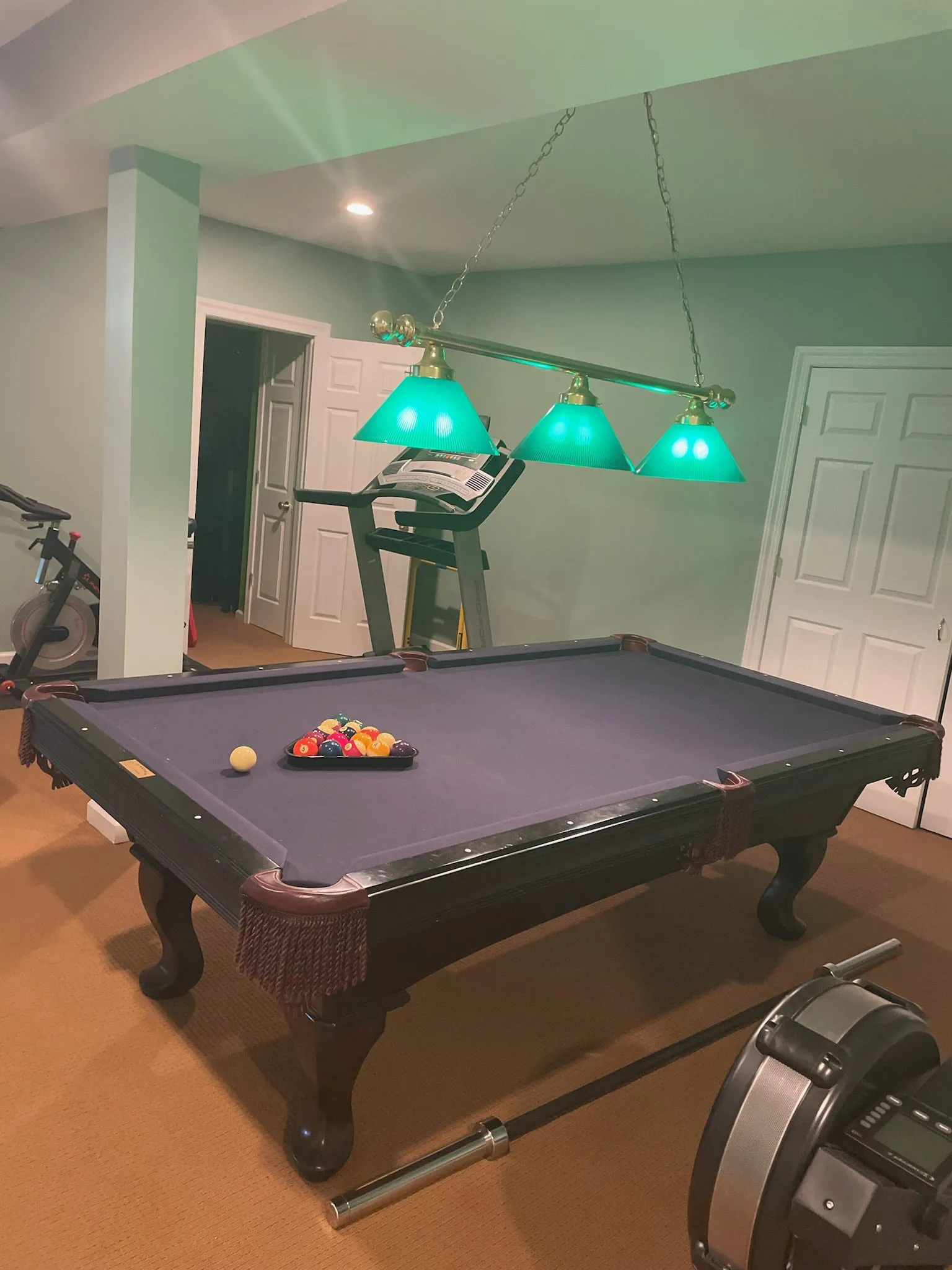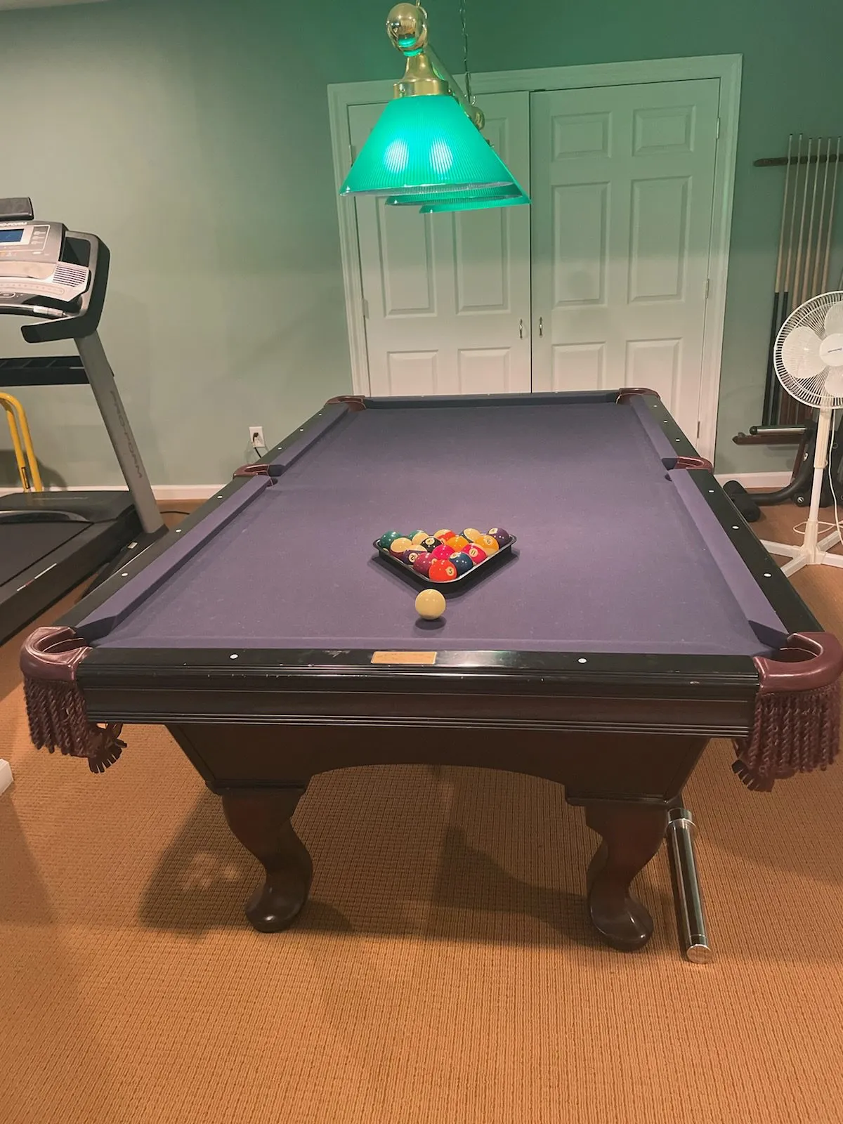 This is the Eclipse model pool table by Olhausen Billiards.  This table offers a traditional style.  The richness and depth added by the custom heritage cherry finish makes it even more of a head turner.  Made in the USA!
