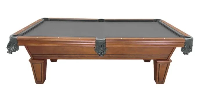 This 8′ table has a solid wood rails and aprons and MDF frame and legs in a Navajo Finish.