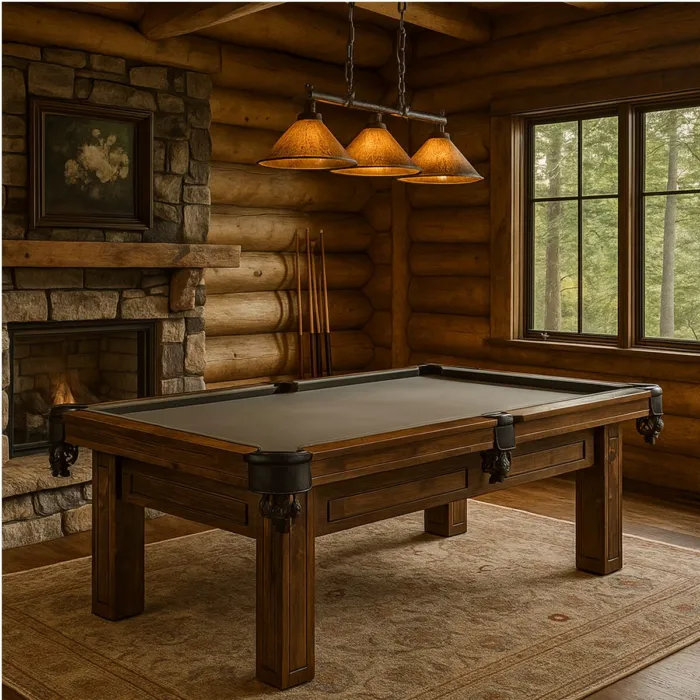 Proudly built in the heartland of America, the Woodland Pool Table by True Billiards is a testament to American craftsmanship. Constructed from solid pine and hand-finished in a rich matte woodland stain, this table brings rustic charm and refined elegance to any game room.