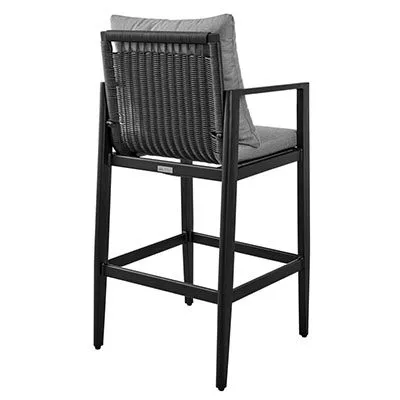 Entertain all year round with the exquisite Cayman outdoor stool. Featuring a minimal and sleek design, this outdoor patio bar stool brings effortless style to your backyard, patio, pool area, garden, or screened-in porch. Rattan is intricately woven around the back of the seat to serve as a unique and elegant detail and featuring ergonomic properties to keep your back properly aligned. This unique piece of metal and wicker patio furniture includes plush dark grey high density foam cushions to offer a wonderfully comfortable sitting experience. The cushions also feature a zipper closure that allows for easy removal and cleaning making this the ideal piece of outdoor patio furniture! Featuring an inviting and versatile design, this outdoor bar stool with back sits easily in any outdoor setting. Made up of lightweight and durable aluminum framework, the Cayman metal barstool is easily portable and features a multi-layer powder coating for further effective protection from the elements and everyday wear and tear. This is a perfect piece to use indoors and is treated to withstand being outdoors. The Cayman can support up to 308lbs per stool.