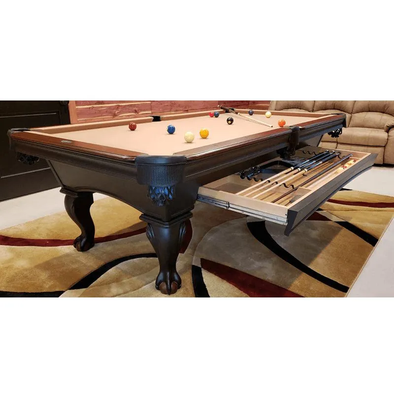 The Blackhawk Pool Table by Olhausen Billiards brings timeless style and exceptional performance to any game room. Expertly handcrafted in the USA from solid Tulipwood, this classic design features a traditional arched cabinet and iconic ball-and-claw legs, evoking the elegance of vintage billiard tables with unmatched durability.