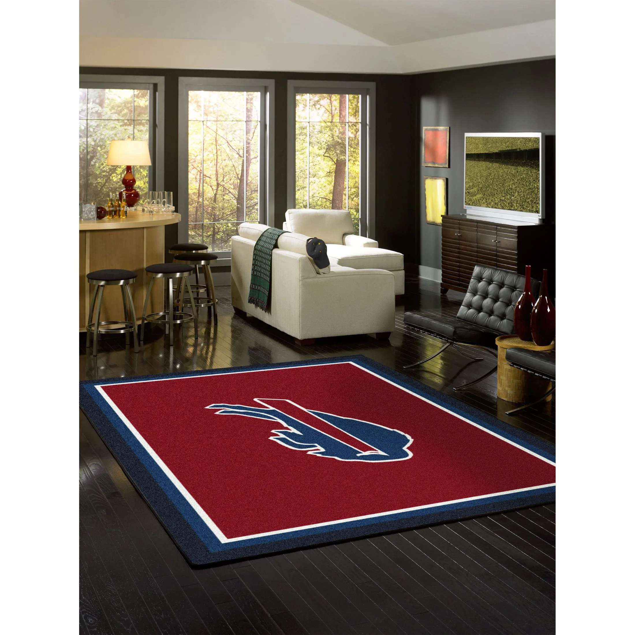 Show your team spirit with this officially licensed Buffalo Bills area rug, featuring team colors and a large team logo! Made with premium Stainmaster®nylon fiber, this rug is fade resistant, durable and easy to care for. Endura-Loc™ high performance backing helps assure the rug always lies flat and serged edges give your rug the quality that your home and team deserve. The rug has a 2 year warranty that protects against manufacturer’s defects. Product made in the USA.