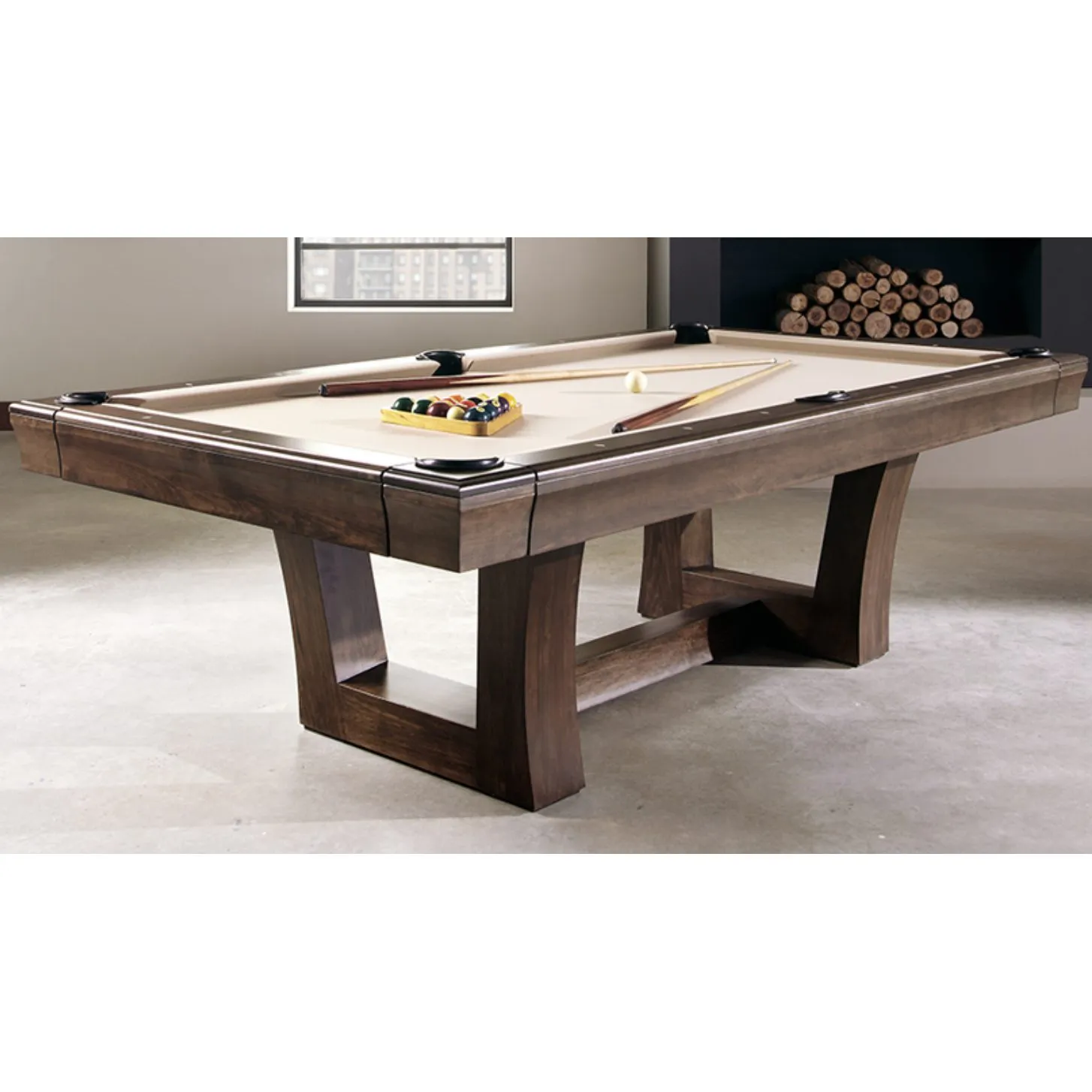 The City pool table by California House is made from solid wood and features a beautiful, clean design. All California House pool tables are made-to-order in Sacramento, California, U.S.A. and feature factory pre-assembled chassis, 100% vegetable tanned leather pockets and diamond shaped pearlized mother-of-pearl sights.