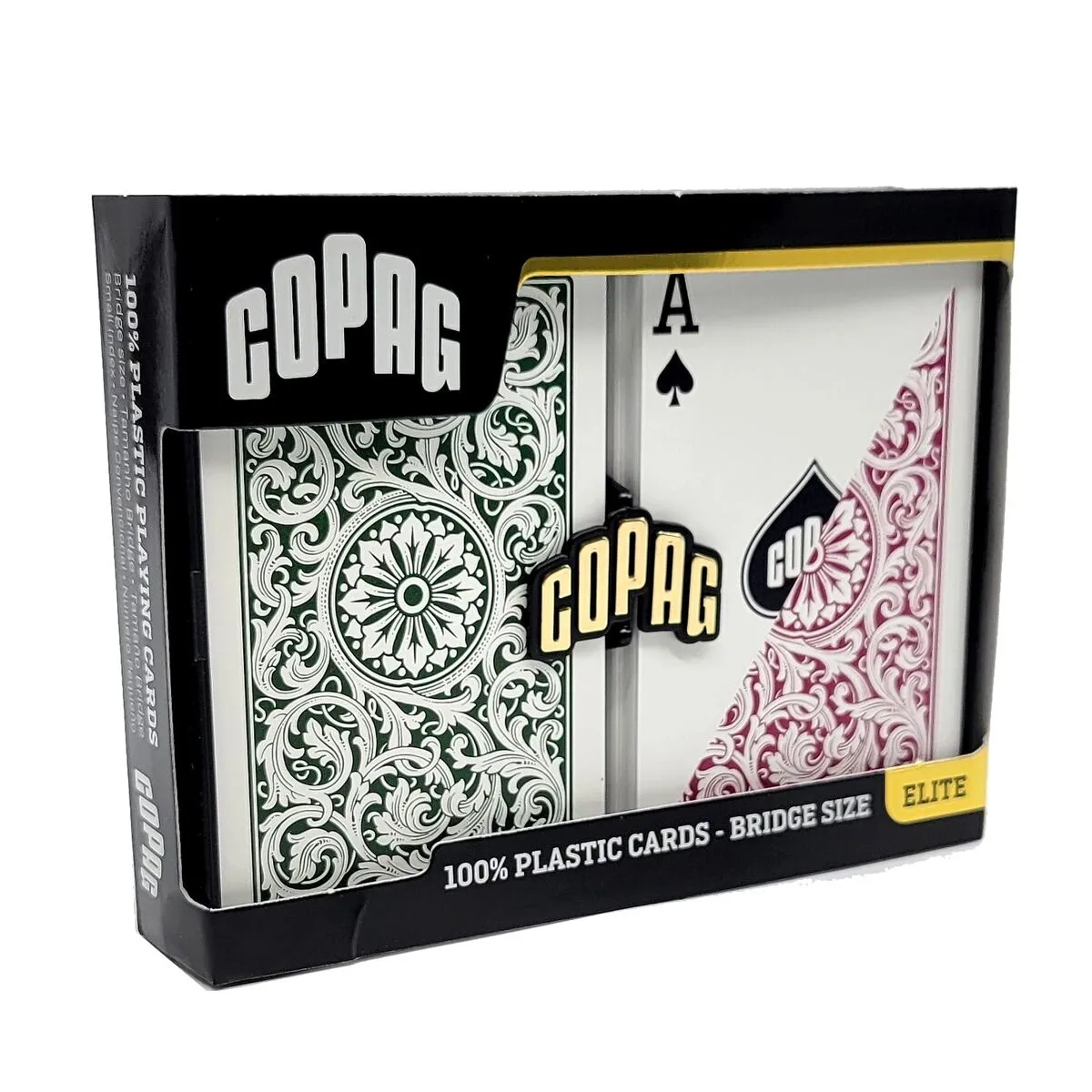 Copag playing cards are crafted from high-quality, virtually indestructible PVC plastic, ensuring exceptional durability and long-lasting performance. Unlike paper decks, these premium cards are fully washable—simply wipe them clean with a damp cloth to keep them looking and feeling like new.