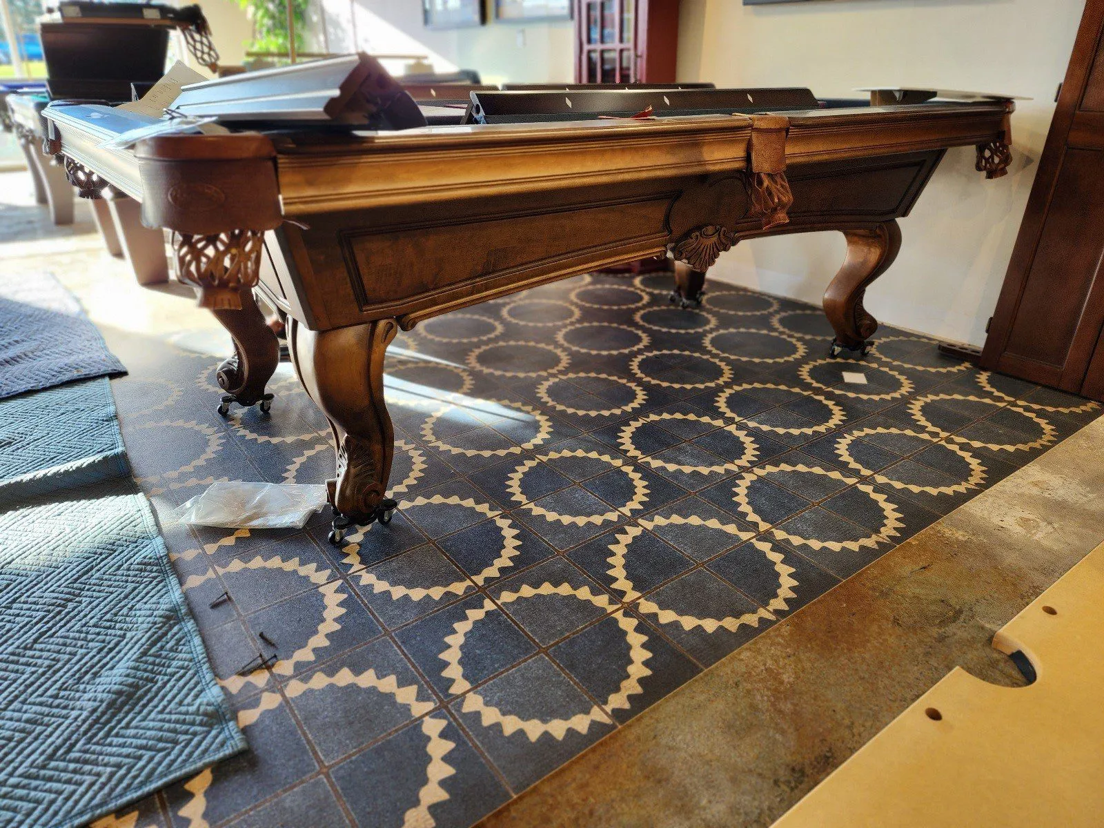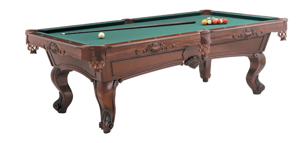 The Americana II pool table by Olhausen Billiards is made from solid tulipwood and features traditional arched cabinet design with Queen Anne legs. All Olhausen Billiard pool tables are handcrafted in Tennessee, U.S.A. and feature Accu-Fast Cushions and a Lifetime Warranty.