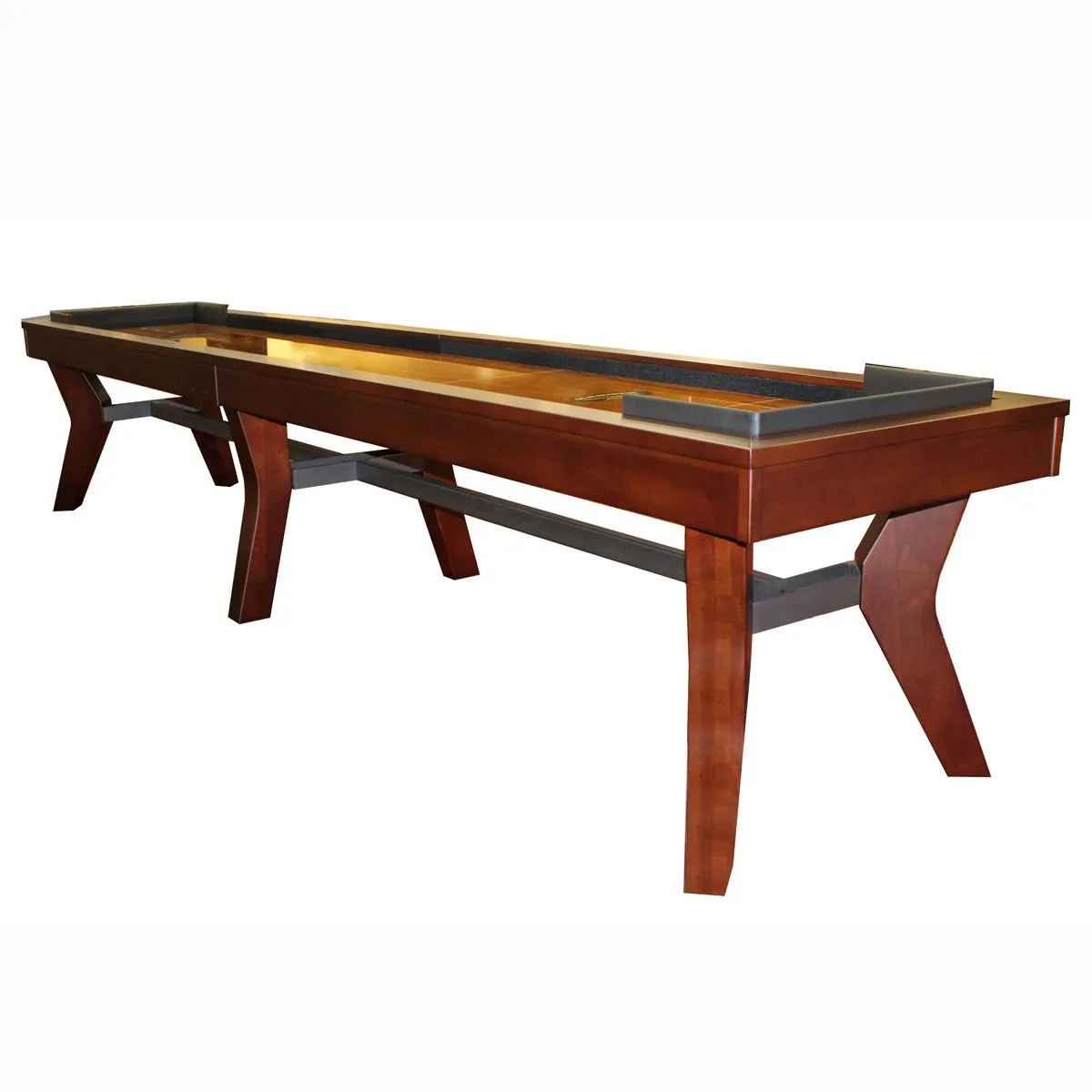 Enhance your game room with the Laguna Shuffleboard Table, expertly handcrafted from solid maple wood for exceptional durability and timeless appeal. Featuring a sleek, flat-paneled cabinet design, boomerang legs, and a sturdy metal crossbar, this shuffleboard table seamlessly blends style and stability. Proudly made in the USA at Olhausen’s 250,000 sq. ft. manufacturing facility in Portland, Tennessee, the Laguna Shuffleboard Table reflects superior craftsmanship and attention to detail.