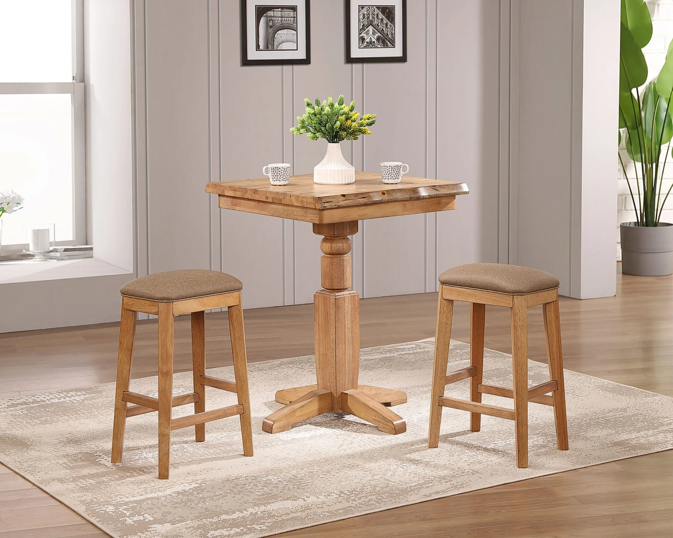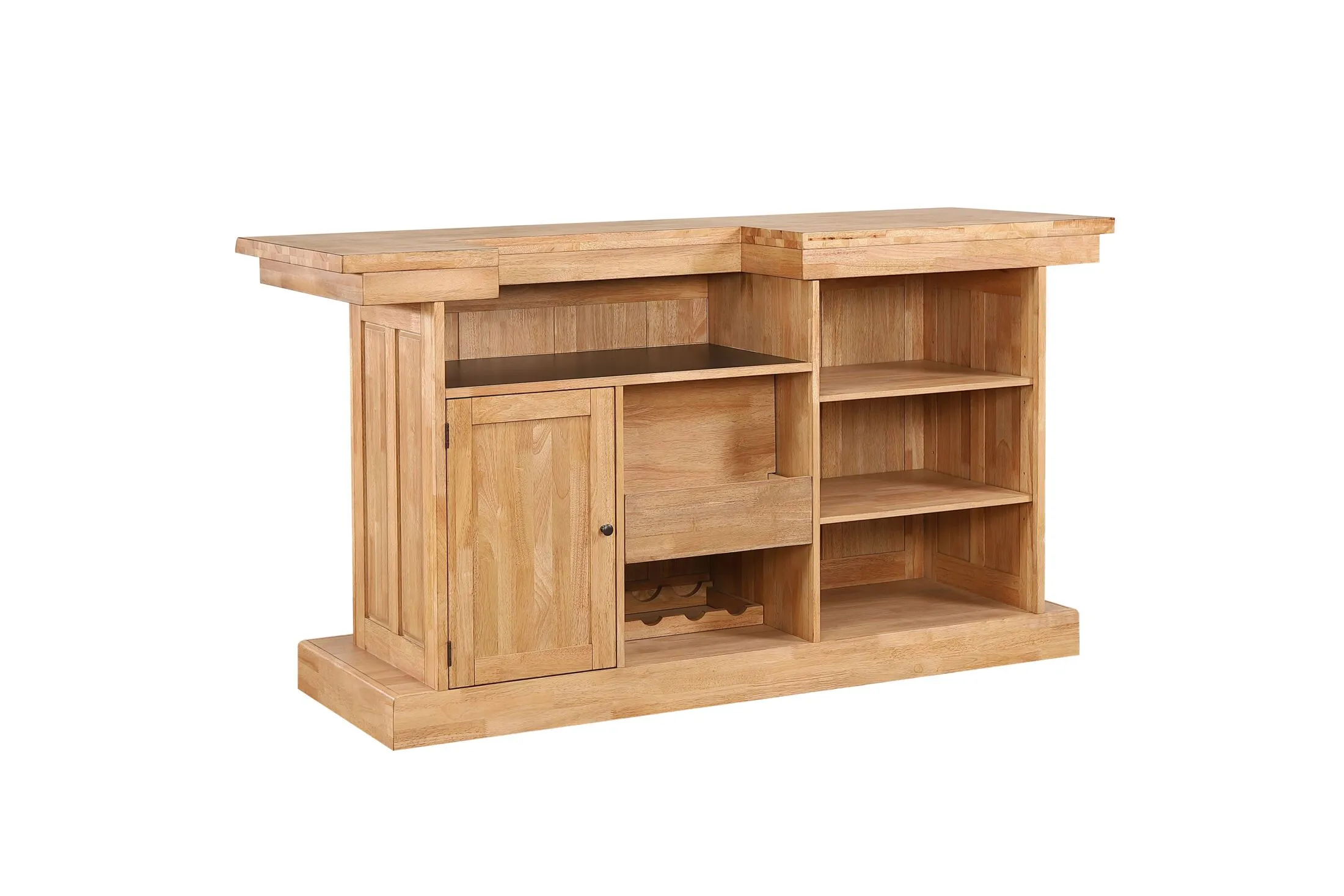 Matching back bar, hutch, pub table, bar stools, and spirit cabinet are available.
