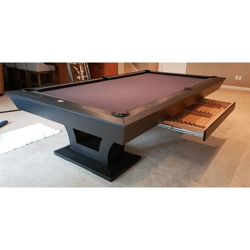 The Luxor Pool Table by Olhausen Billiards blends sleek, modern aesthetics with the superior craftsmanship Olhausen is known for. Featuring a contemporary enclosed solid wood rail system, flat-paneled apron, and pedestal-style legs finished in brushed aluminum, this table delivers both bold design and top-tier performance.