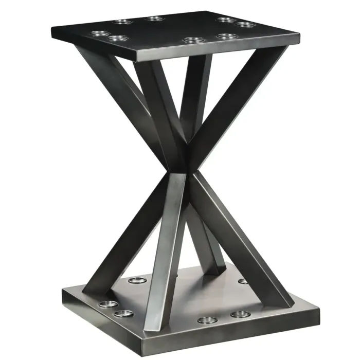 The metal floor pool cue rack is the perfect solution for organizing and displaying up to eight pool cues in style. Built from heavy-duty steel in a sleek gunmetal grey finish, this floor-standing cue rack adds a professional touch to any game room or billiard space.