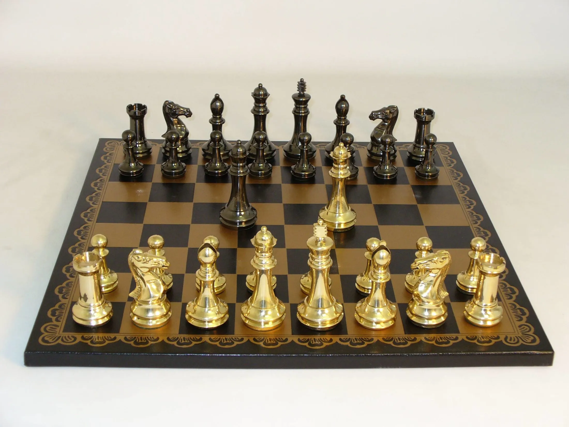 4″ METAL STAUNTON CHESSMEN ON LEATHER BOARD CHESS SET