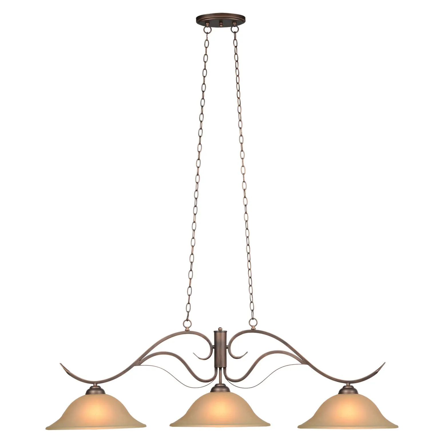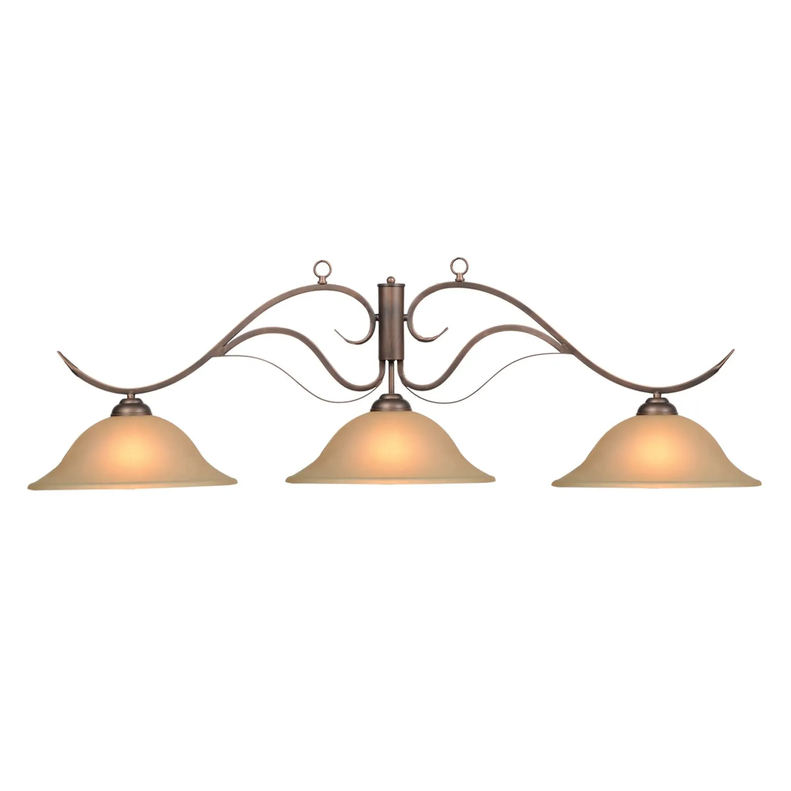 Curvaceous framework offers exceptional elegance to this three-light billiard pendant, which boasts an oil rubbed bronze finish and opaque glass dome shades.
