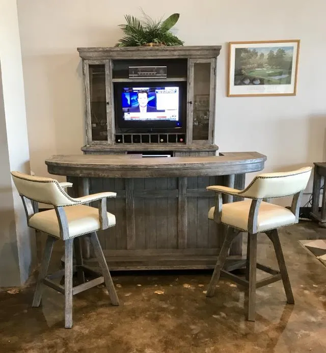 This five-piece bar set would be a functional statement in any room!  The PGA is in collaboration on the styling of this beautifully distressed grey set.