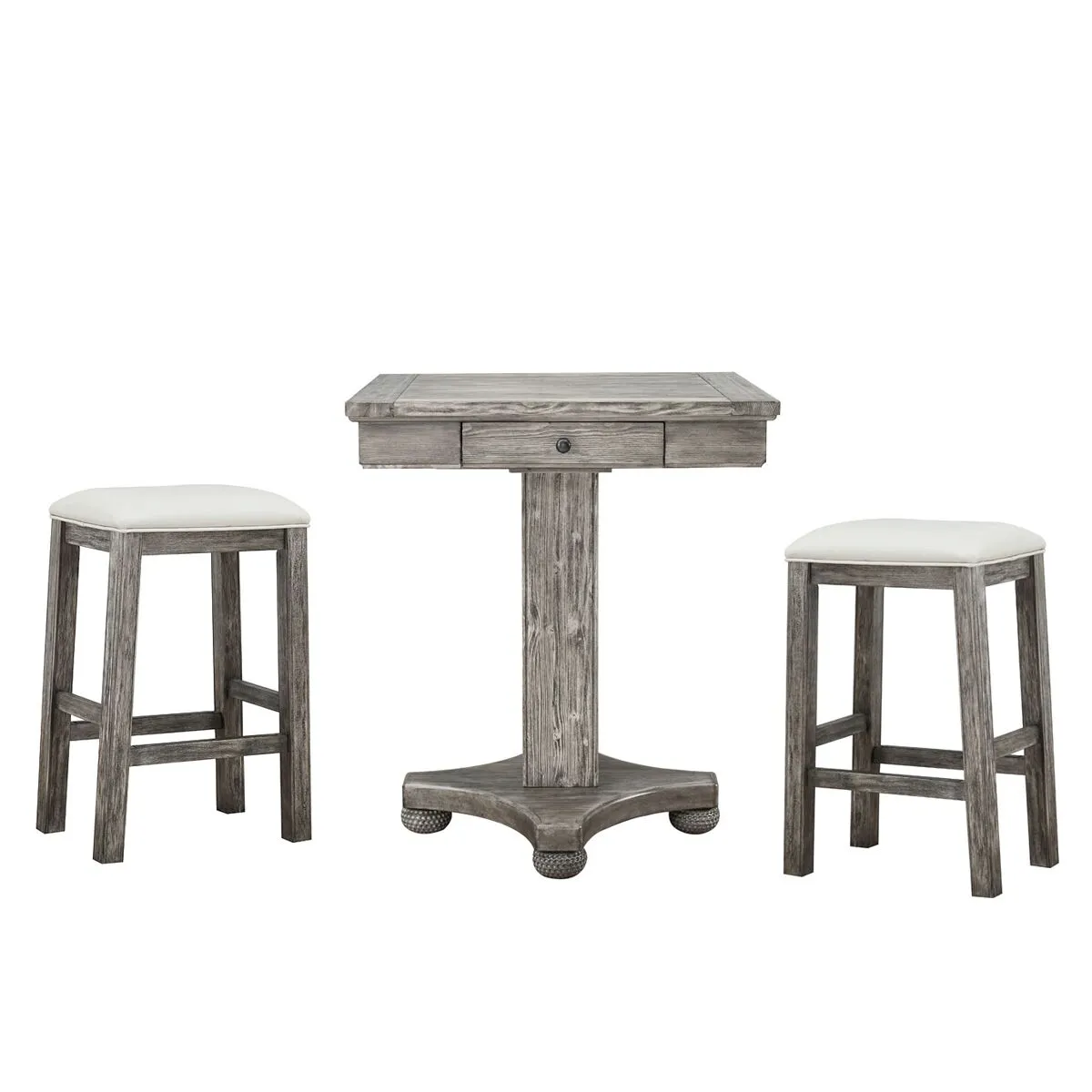 Whether you live on a golf course or are just a fan of the game, this set ads character, class, and fun to any entertainment space. The top of the pub table flips over to an upholstered card surface. Each side of the table offers a convenient storage drawer for cards and game pieces. Set includes table and four matching saddle stools.