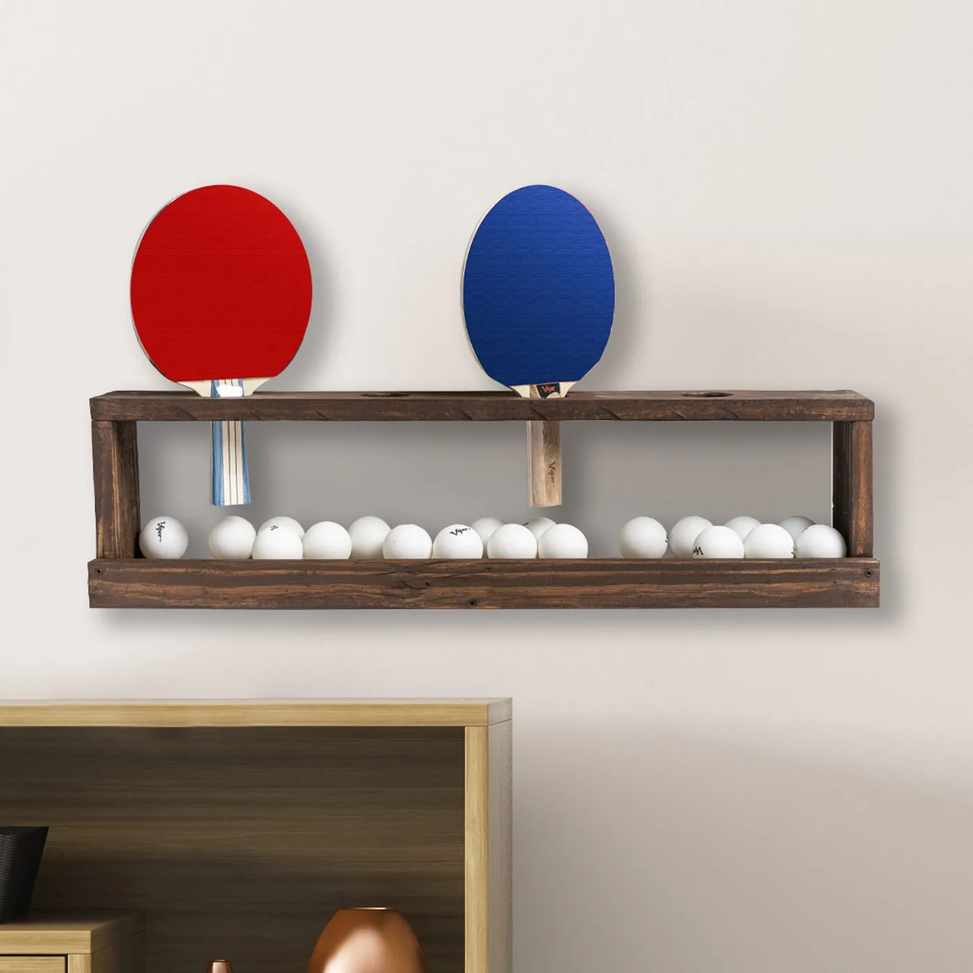 Truly one-of-a-kind, the Ping Pong Paddle Wall Rack holds up to 4 paddles and a bunch of ping pong balls. No more mess!
