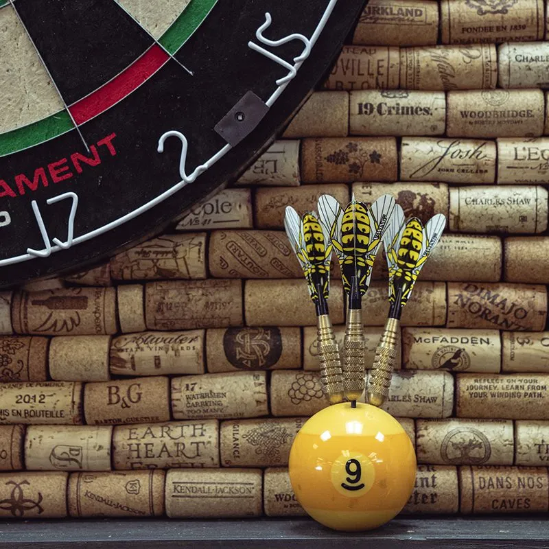 The newest addition to our Reclaimed Recreation line – the pool ball dart holder! These are made with repurposed pool balls drilled to hold your darts. You won’t find this unique item anywhere but Royal Billiard.