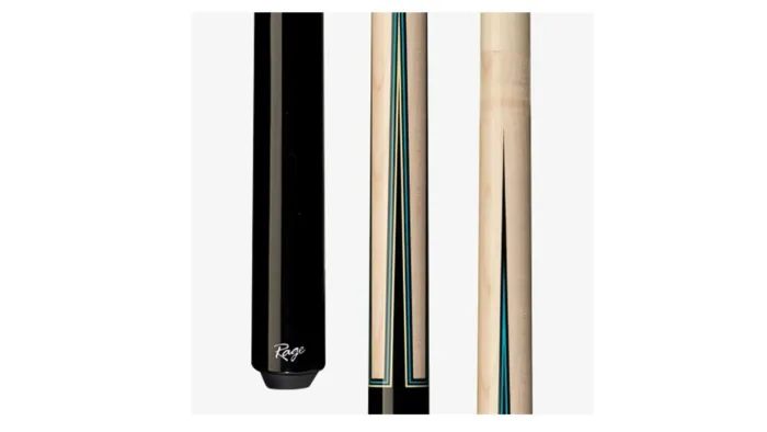 All Rage cues are built to be stylish, affordable and long-lasting pool cue sticks. This Rage Sneaky Pete cue features 100% Hard Rock Maple construction with full professional taper. It has natural Maple forearm with graphic four-point deep walnut; blue outline design, deep walnut butt, wood-to-wood joint and sleek wrapless handle.