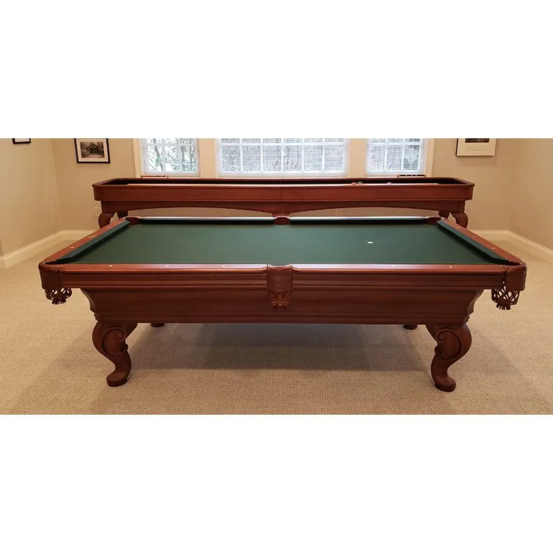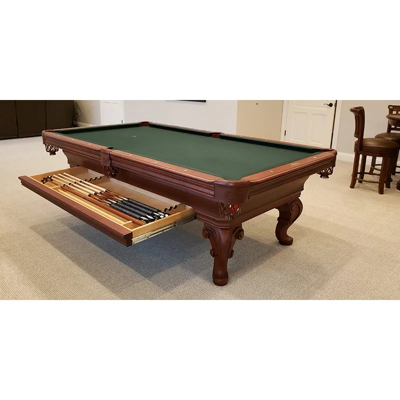 The Seville Pool Table by Olhausen Billiards is a stunning example of timeless craftsmanship and luxury design. Made from 100% solid wood, this premium billiards table showcases a flat-paneled, routered cabinet with intricate, hand-carved legs, bringing an elegant, traditional aesthetic to any game room or entertainment space.