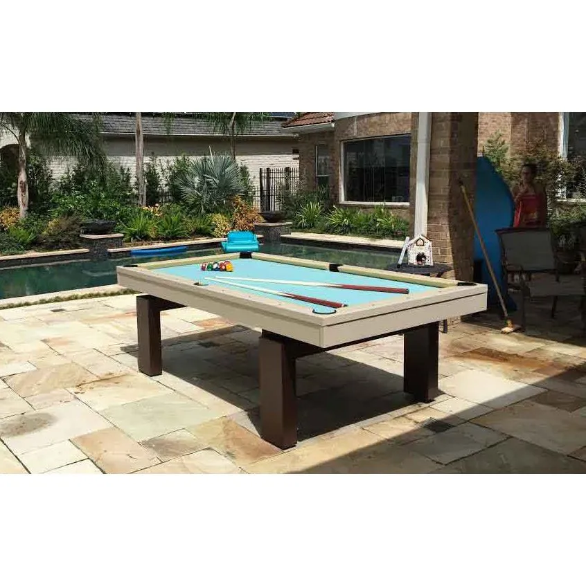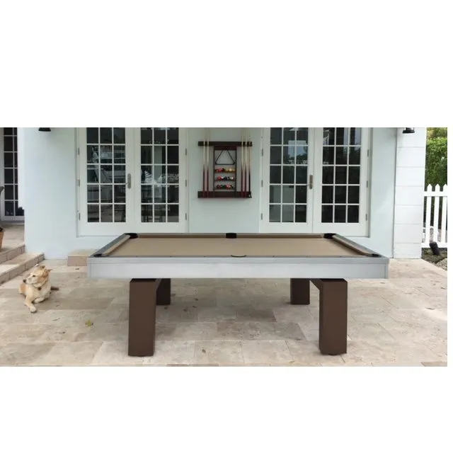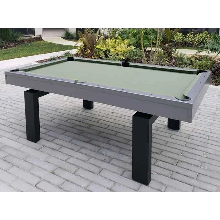 The South Beach outdoor pool table by R&R Outdoors Inc. is made from Marine grade aluminum and features Sunbrella® cloth. The South Beach outdoor pool table is dual purpose and has the option to effortlessly transform from pool table to soft top dining. The South Beach outdoor pool table has optimized under-table clearance that allows you to easily pull up seating – ideal for those who desire to accommodate even greater seating options.