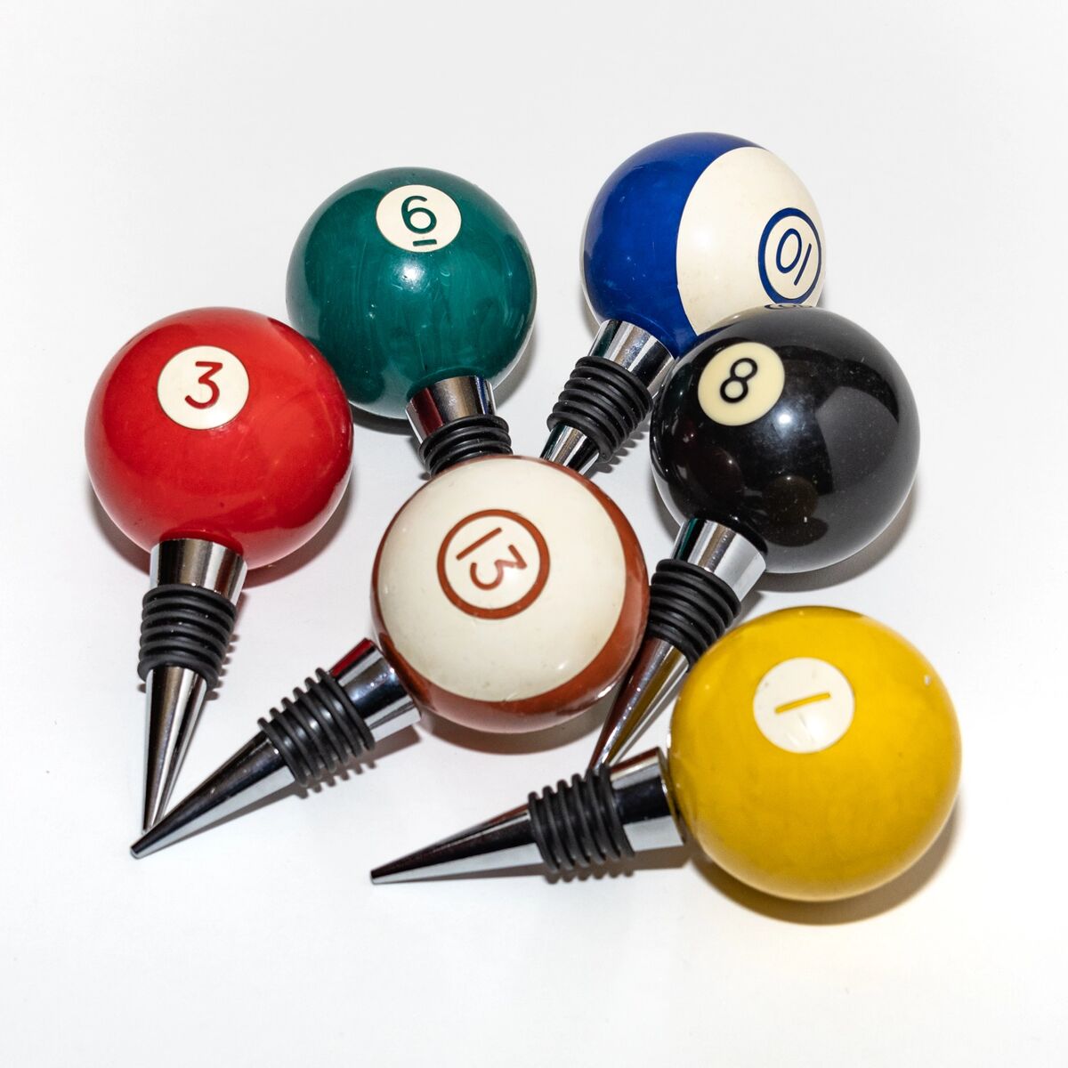 Bring personality and nostalgia to your barware collection with these sustainable, eco-friendly bottle stoppers. They make a perfect gift for pool players, wine lovers, and vintage décor enthusiasts.