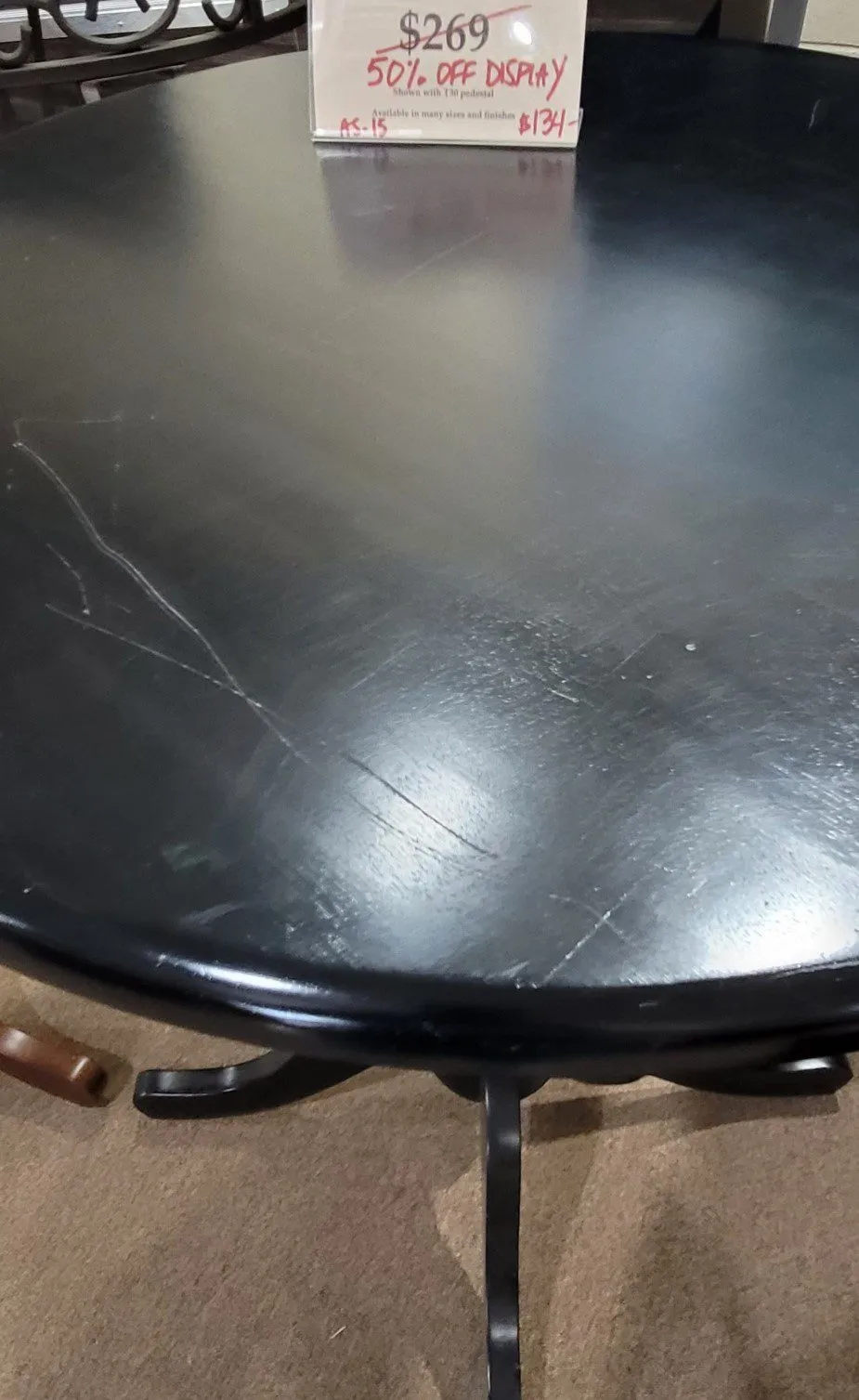 This display model pub table is being sold as-is. There is nothing wrong with it structurally but there are cosmetic scratches to the top dining surface.