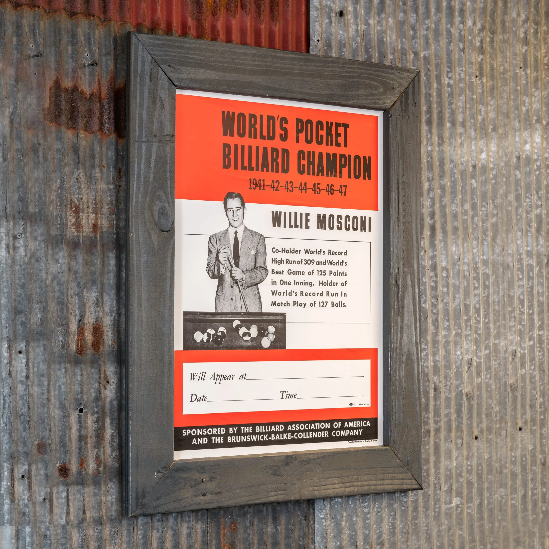 This reclaimed wood poster frame is part of our functional game room decor line built with reclaimed wood. The  frame is crafted right here, by the craftsmen at Royal Billiard & Recreation. Since this poster frame is hand-crafted, every unit is individually unique and one-of-a-kind.